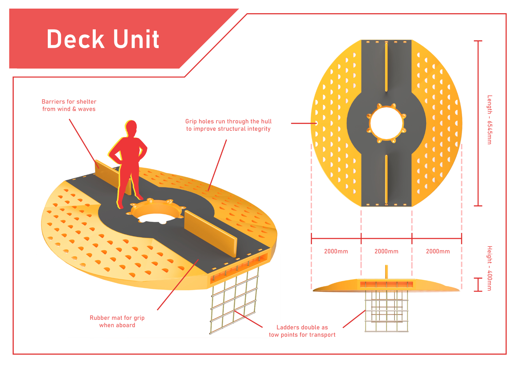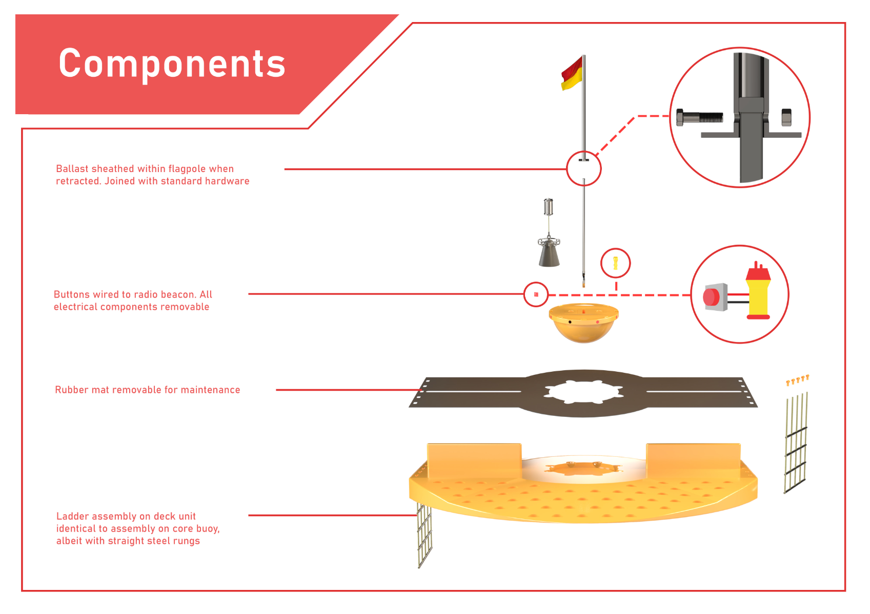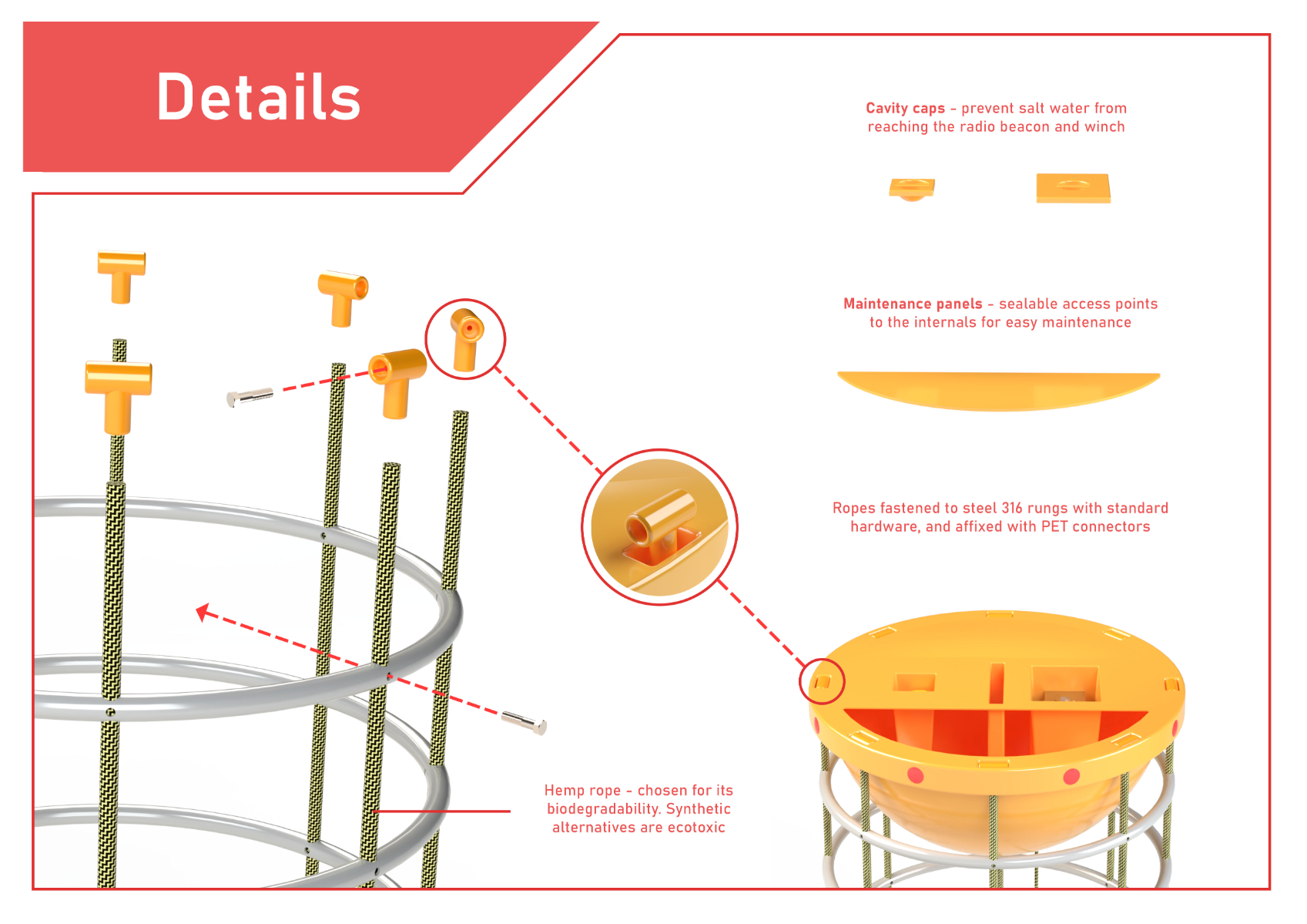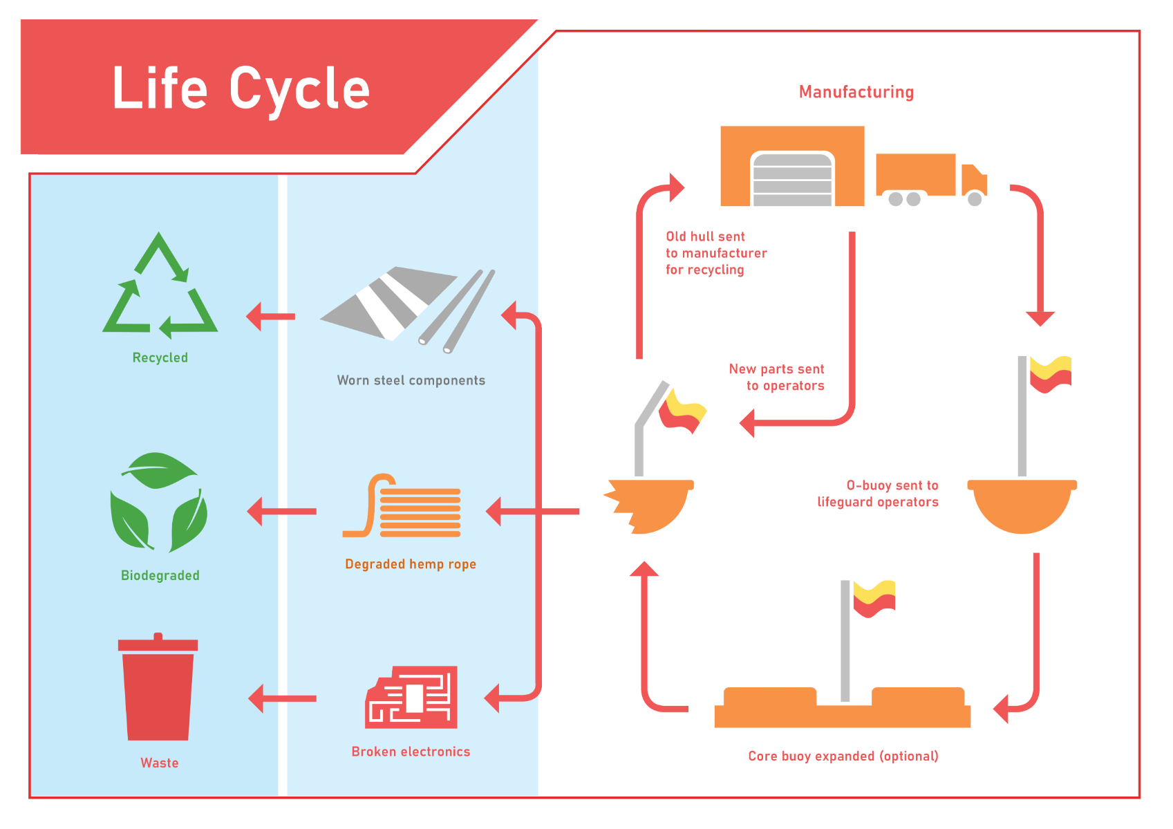 An emergency float intended for use at public beaches. The O-buoy is anchored offshore to accommodate swimmers dragged out by rip currents, as many drowning incidents occur due to exhaustion while trying to swim back to shore. The O-buoy provides a platform to board and signal surf lifesaving services for help. The design is modular and expandable, and built with repairability in mind. The body is constructed with rotationally-moulded HDPE, 316 steel, and hemp rope - minimally ecotoxic and fully recyclable. This project won 1st prize in the 2024 ARMA Student Design Competition, and received a finalist position in the 2025 New Zealand Best Awards.