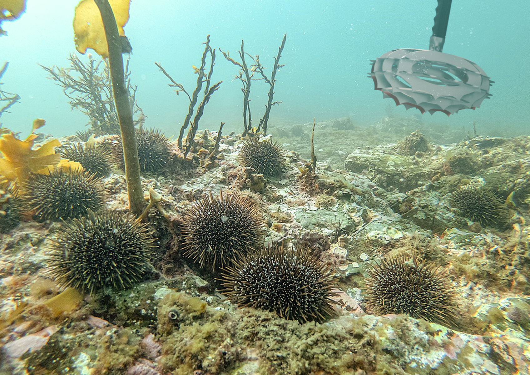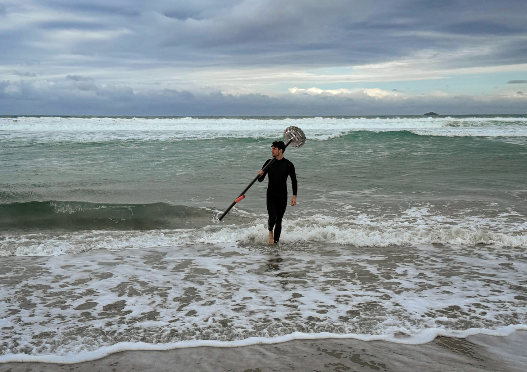 A marine conservation tool for culling kina - a native sea urchin that grazes on kelp. The overfishing of lobsters and snapper in the Hauraki gulf - kina's only natural predators - has caused a catastrophic boom in the kina population, and resulting decimation of coastal habitats. While healthy kina must be collected, malnourished kina found in barrens (ecological dead-zones left behind by kina herds) must be culled as part of population control. Because conservation divers often use snorkels, they are limited to depths of 5 meters, beyond which repeated dives are exceedingly taxing. The kina lance aimed to extend this effective range down to 8m depths, and allow kina to be culled without diving at shallowed depths, thereby reducing the workload for frontline conservationists.