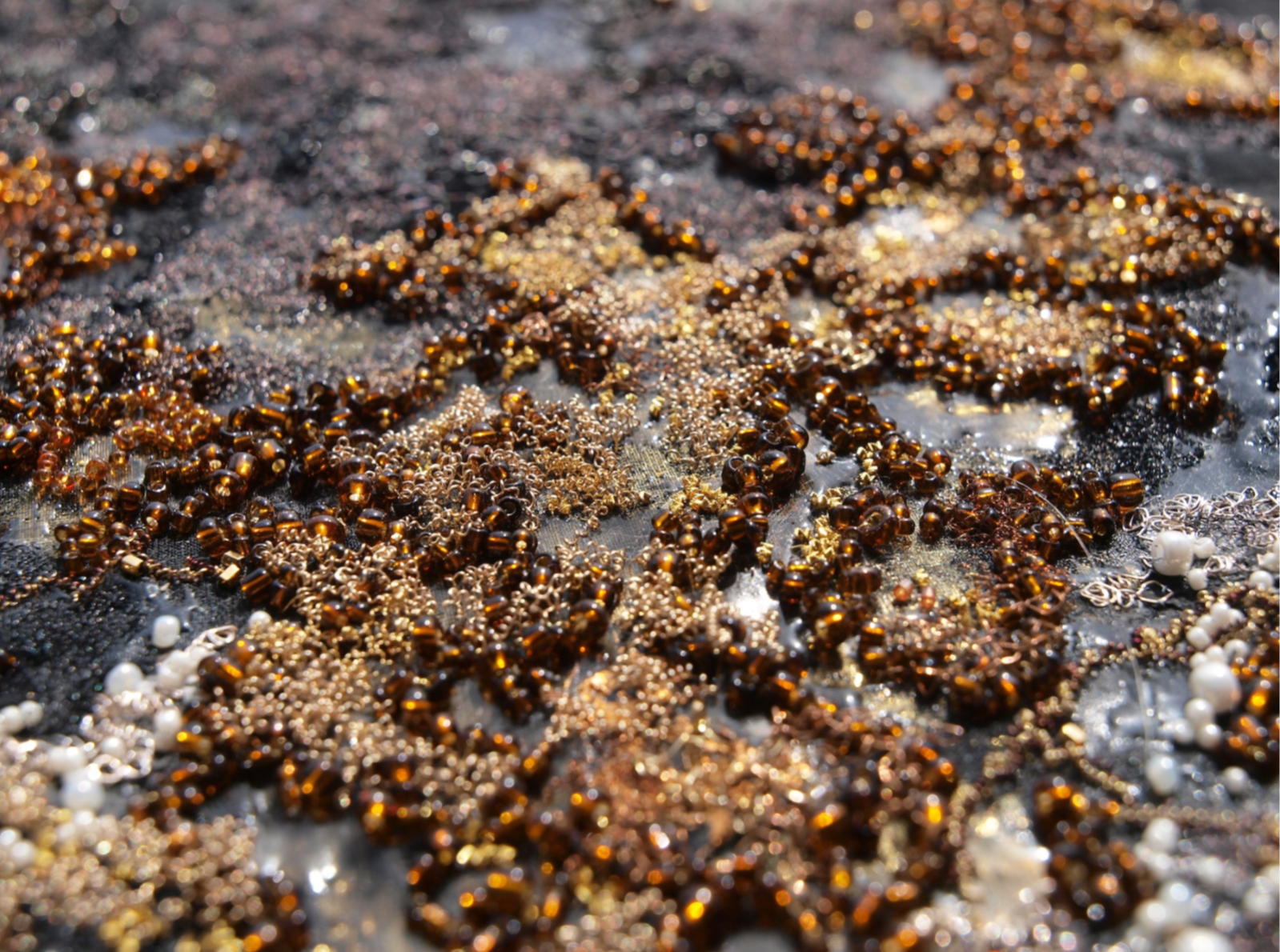 Her long-standing passion for art led her from studying fashion design in Germany to the Royal School of Needlework in London, where she explored ways to merge her love of art and fashion. Driven by a desire to translate the organic and unpredictable quality of her drawings and sketches into hand embroidery, she began experimenting with a variety of materials. For her, innovation is essential to achieving the seemingly impossible—pursuing a vision, an idea, an urge to discover.