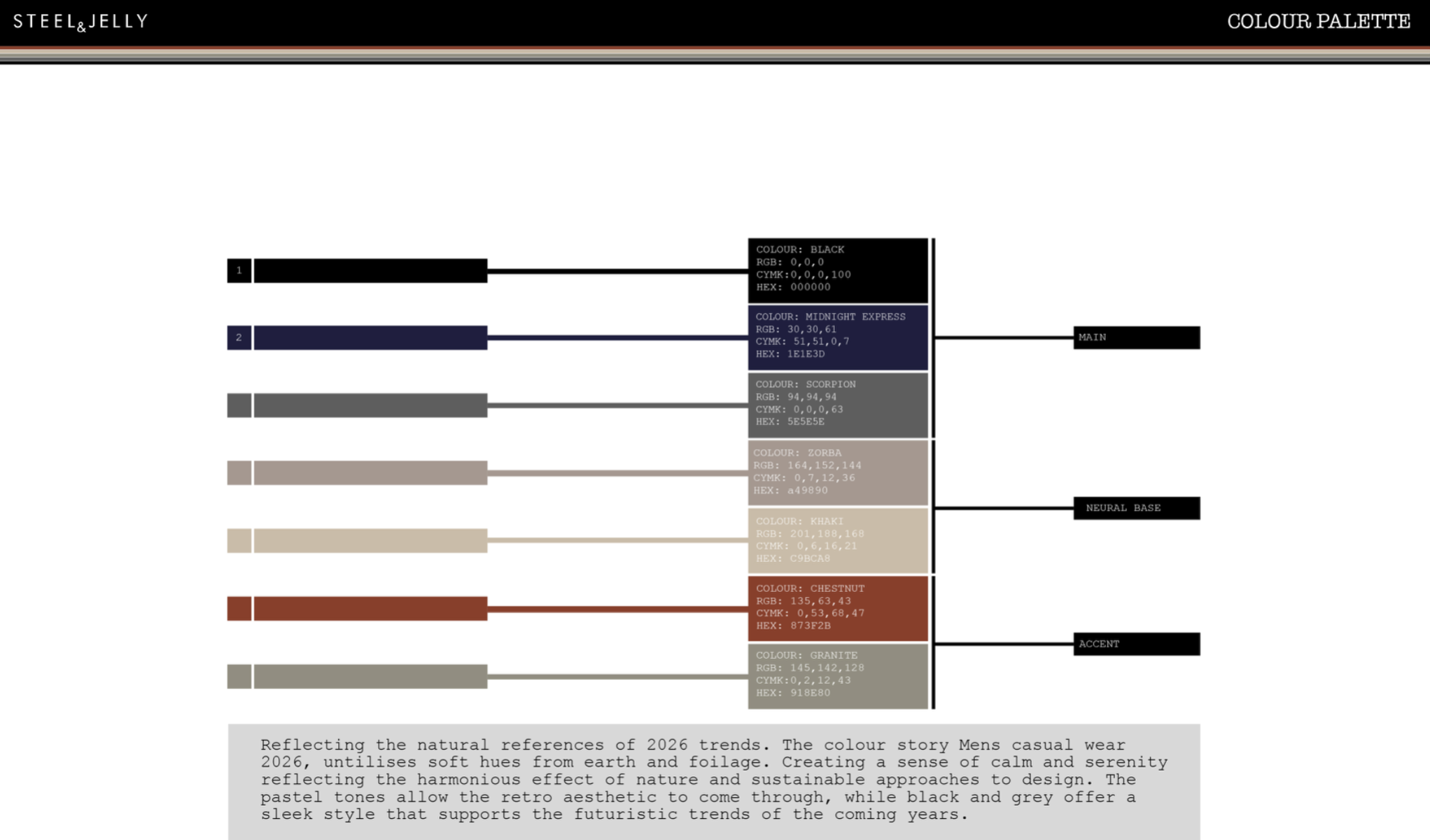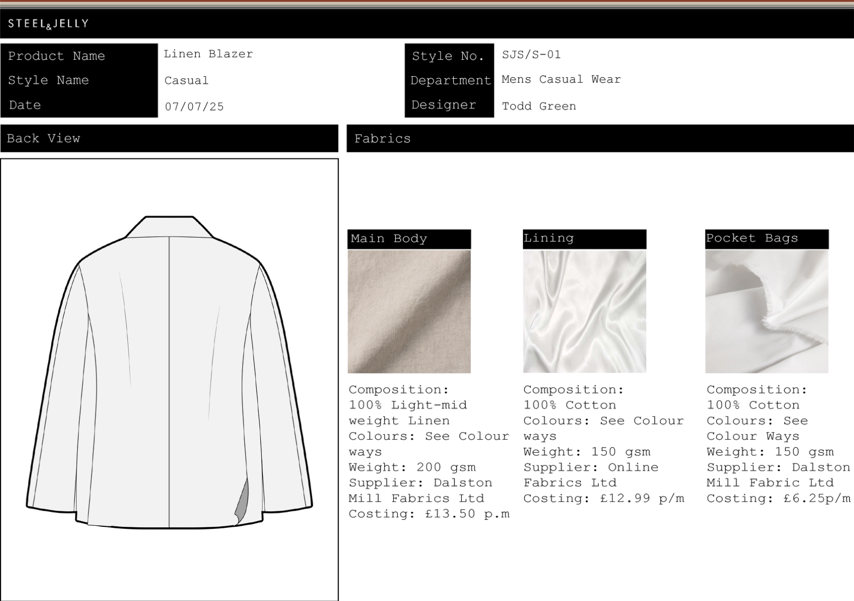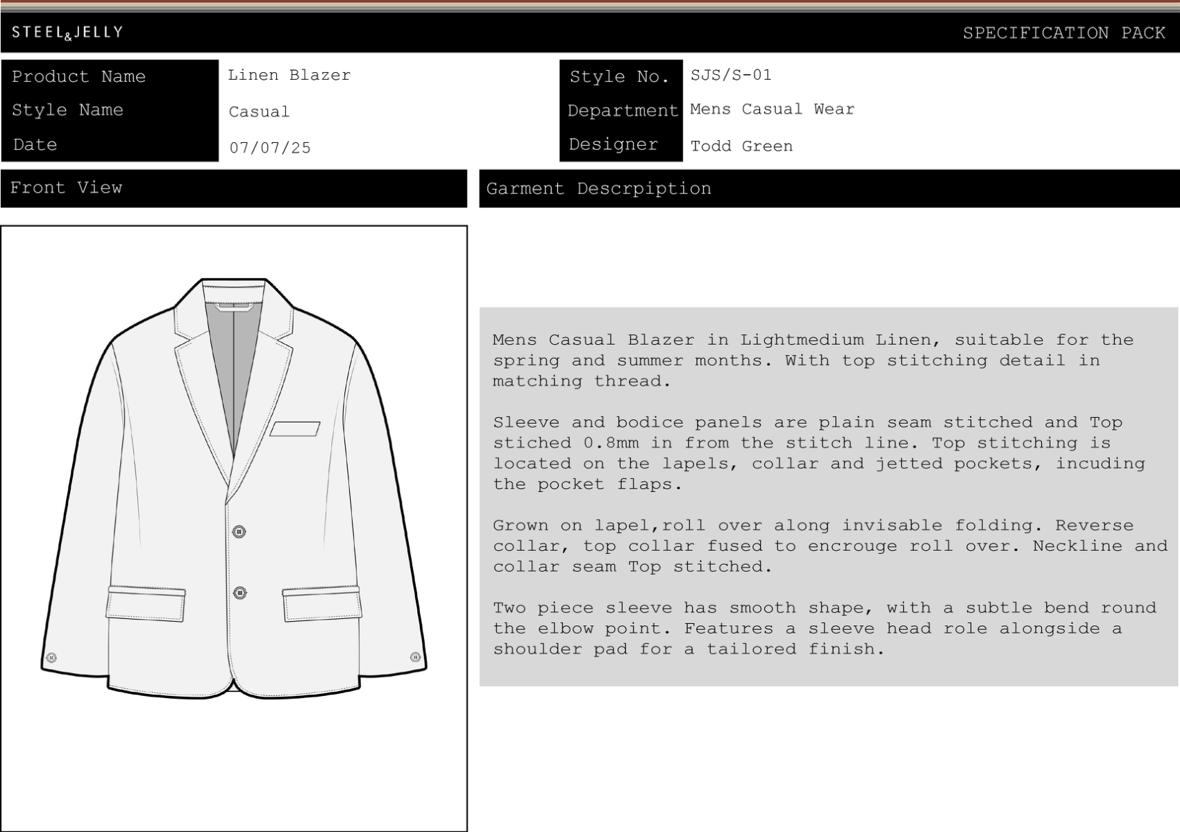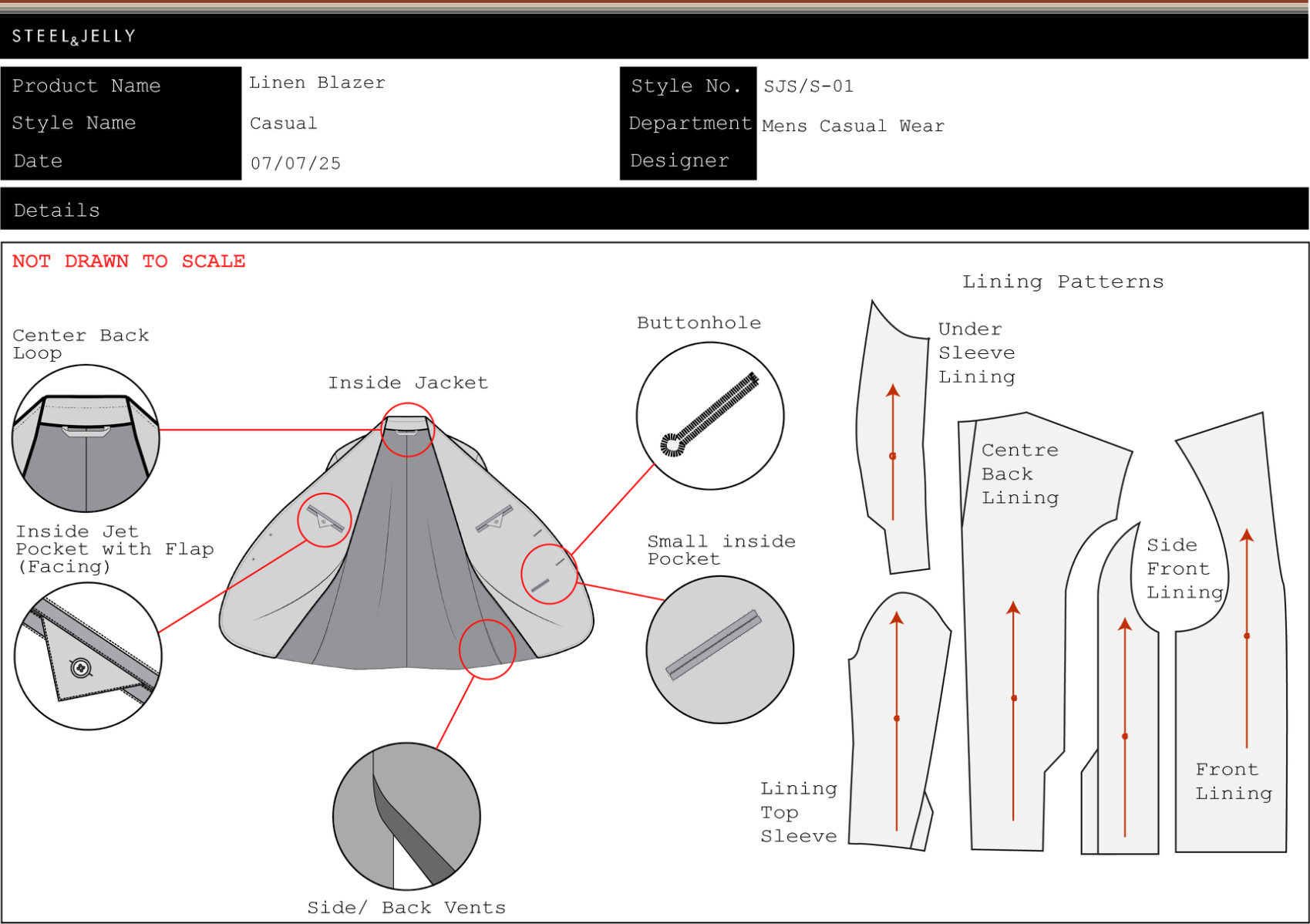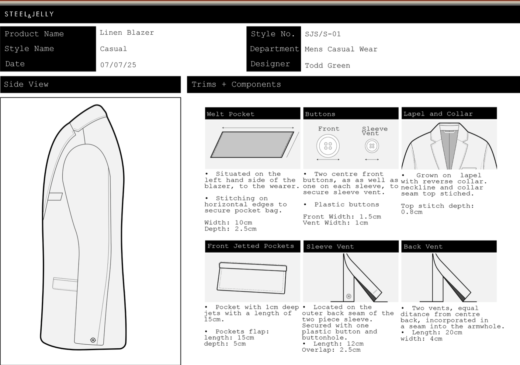 Design project for Menswear brand Steel & Jelly Project includes; - Brand research - Competitor - Customer Research - Trend Research - Fabric Sourcing - Design Development - Illustration - Technical Flats