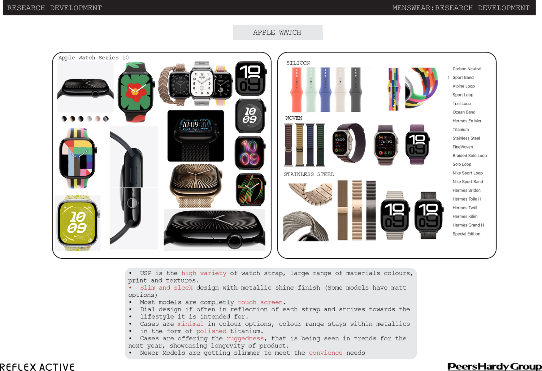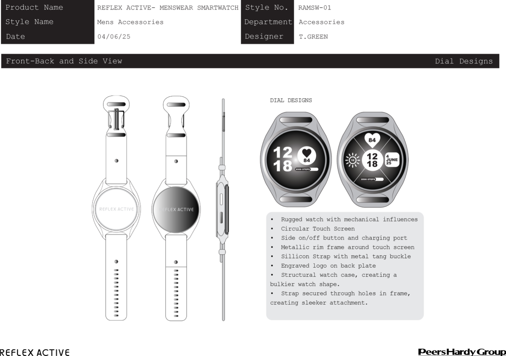 Design project for accessories company Peers Hardy. Tasked to design both and menswear and womenswear smart watch. I utilised key research skills, such as brand, competitor and trend research, to create designs that evoked the key inspiration for 2026. Secondly, this brief expanded my CAD skills through completing 3D renders of my designs.